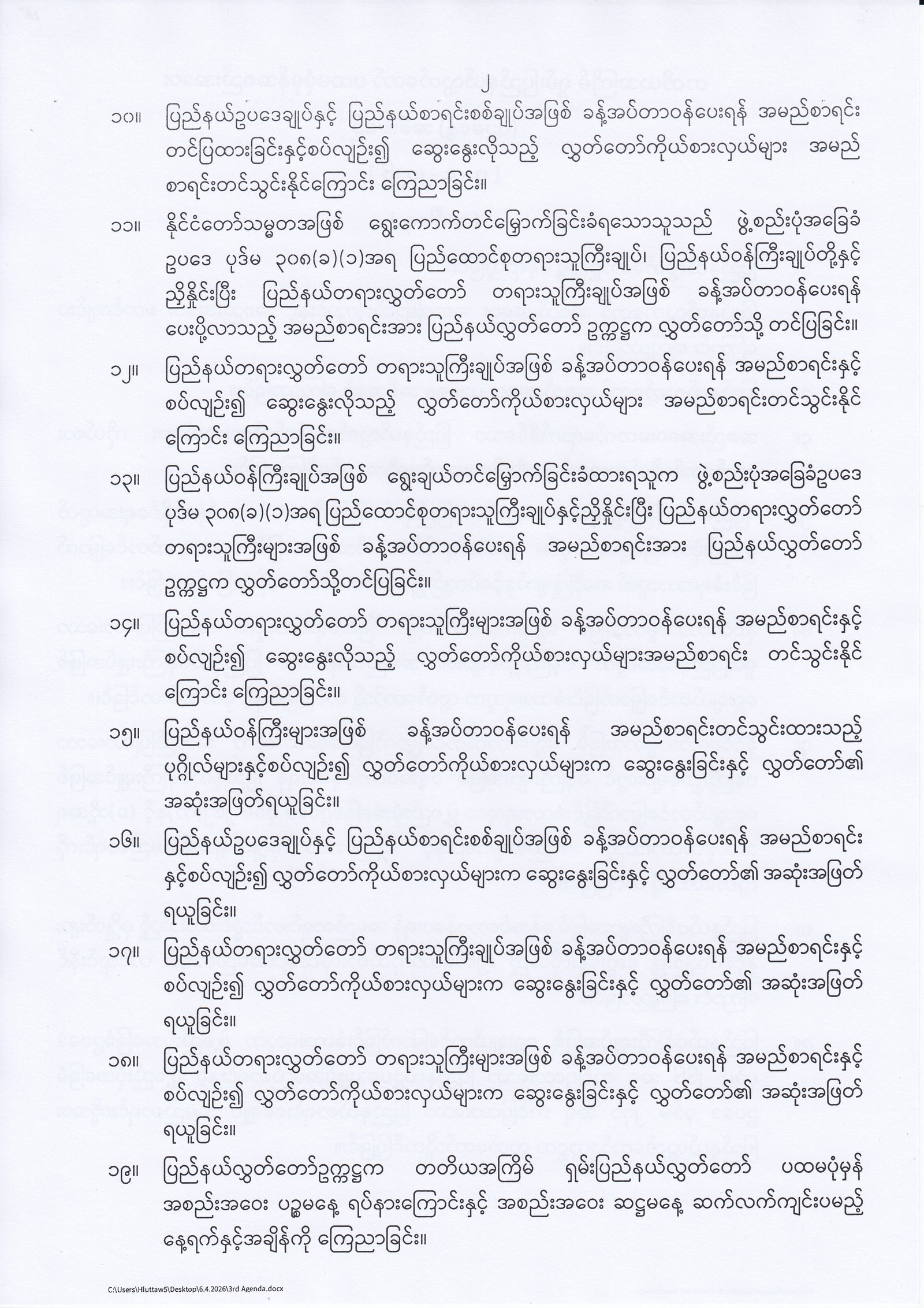 တတိယအကြိမ်ရှမ်းပြည်နယ်လွှတ်တော်ပထမပုံမှန်အစည်းအဝေး(ပဉ္စမနေ့)အစီအစဉ်