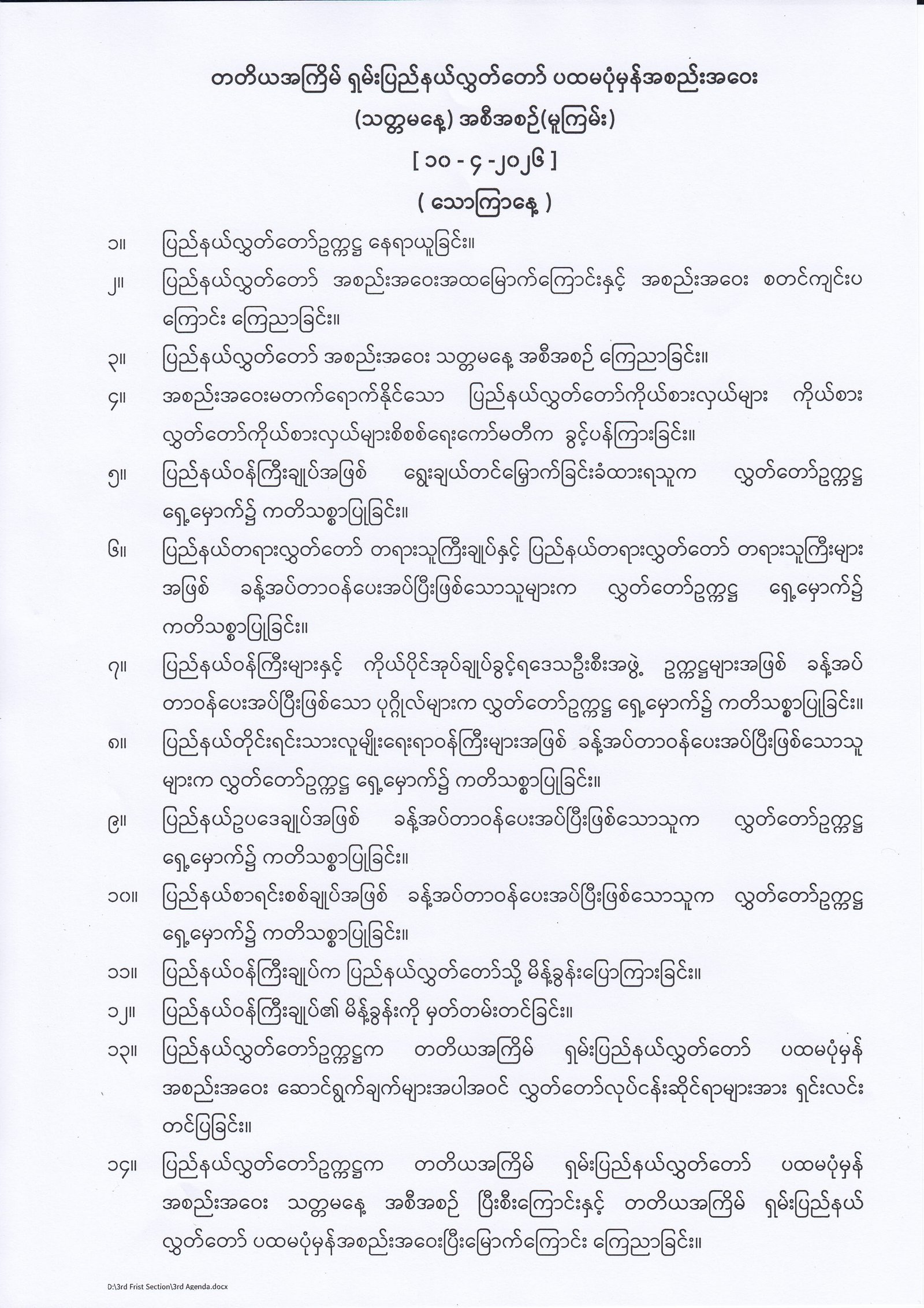 တတိယအကြိမ်ရှမ်းပြည်နယ်လွှတ်တော်ပထမပုံမှန်အစည်းအဝေး(သတ္တမနေ့)အစီအစဉ်(မူကြမ်း)