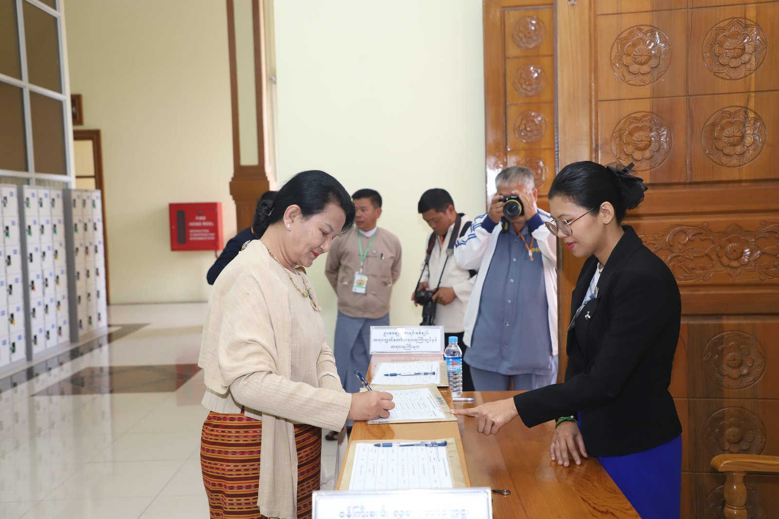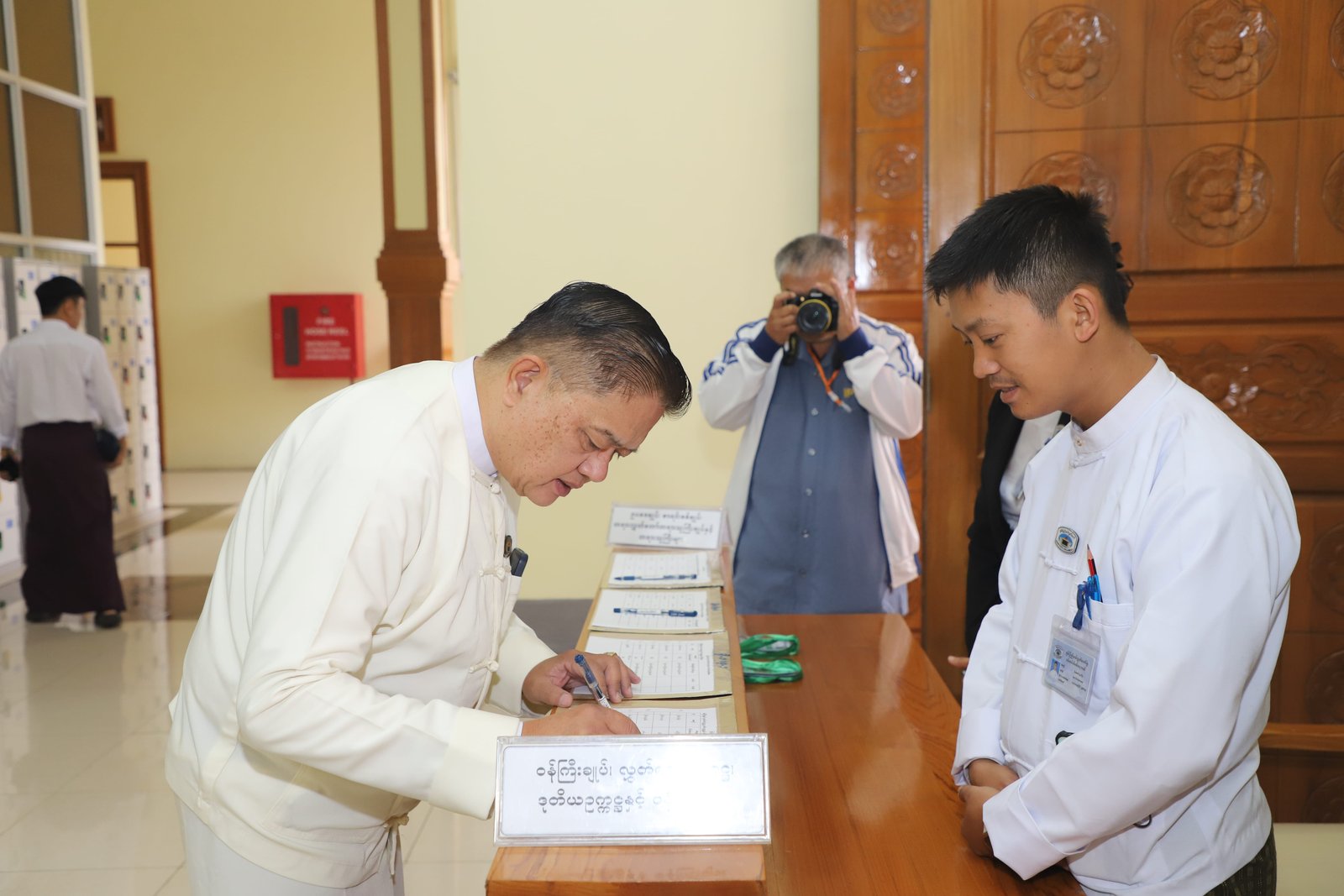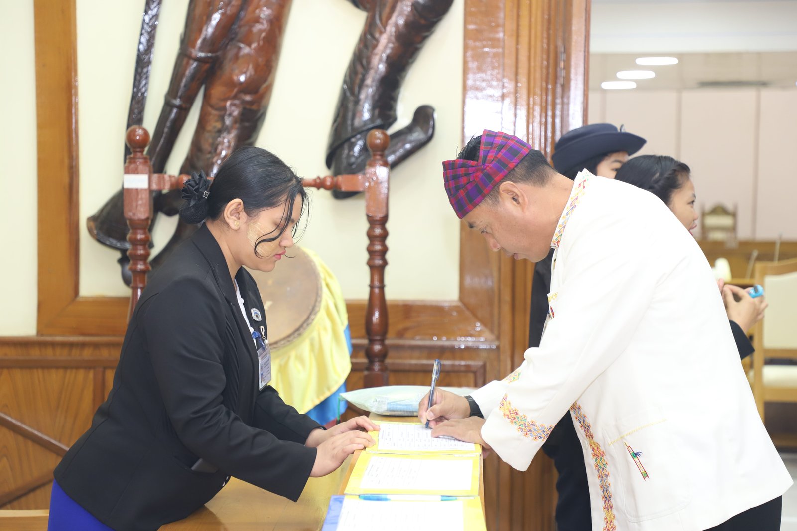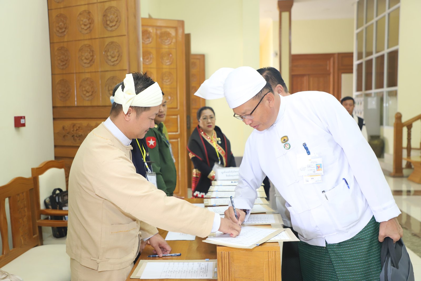 ၎င်းနောက် ပြည်နယ်ဥပဒေချုပ်အဖြစ် ခန့်အပ်တာဝန်ပေးအပ်ပြီးဖြစ်သော ဦးစိုင်းကျော်ဇံက ပြည်နယ်လွှတ်တော်ဥက္ကဋ္ဌ ရှေ့မှောက်၌ ကတိသစ္စာပြုခဲ့ပြီး ကတိသစ္စာပြုလွှာပေါ်တွင် လက်မှတ်ရေးထိုးခဲ့ပြီးနောက် ပြည်နယ်စာရင်းစစ်ချုပ်အဖြစ် ခန့်အပ်တာဝန်ပေးအပ်ပြီးဖြစ်သော ဒေါ်ခင်ထွေးရီက ပြည်နယ်လွှတ်တော်ဥက္ကဋ္ဌ ရှေ့မှောက်၌ ကတိသစ္စာပြုခဲ့ပြီး ကတိသစ္စာပြုလွှာပေါ်တွင် လက်မှတ်ရေးထိုး ခဲ့သည်။