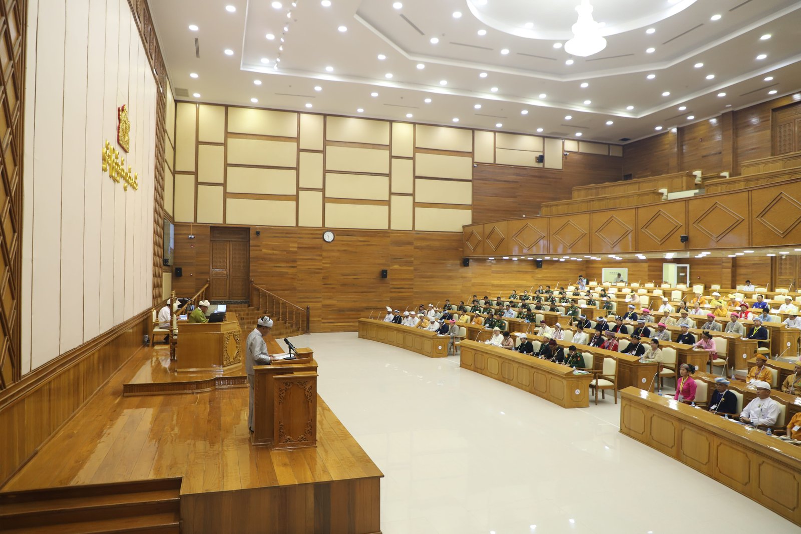 ဦးစွာ ရှမ်းပြည်နယ်လွှတ်တော်ဥက္ကဋ္ဌ ဦးစိုင်းလုံကျော်က ပြည်နယ်လွှတ်တော်သို့ တက်ရောက်ခွင့်ရှိသူ ပြည်နယ်လွှတ်တော်ကိုယ်စားလှယ် (၉၉)ဦး၊ တပ်မတော်သားလွှတ်တော်ကိုယ်စားလှယ် (၃၃)ဦး၊ စုစုပေါင်းလွှတ်တော်ကိုယ်စားလှယ်ဦးရေ (၁၃၂)ဦးရှိသည့်အနက် (၁၃၁)ဦး တက်ရောက်ခဲ့ပြီး ရာခိုင်နှုန်းအားဖြင့် (၉၉.၂၄)ရာခိုင်နှုန်းရှိသည့်အတွက် ပြည်နယ်လွှတ်တော်အစည်းအဝေး အထမြောက်ကြောင်းနှင့် အစည်းအဝေးစတင်ကျင်းပကြောင်း ကြေညာသည်။