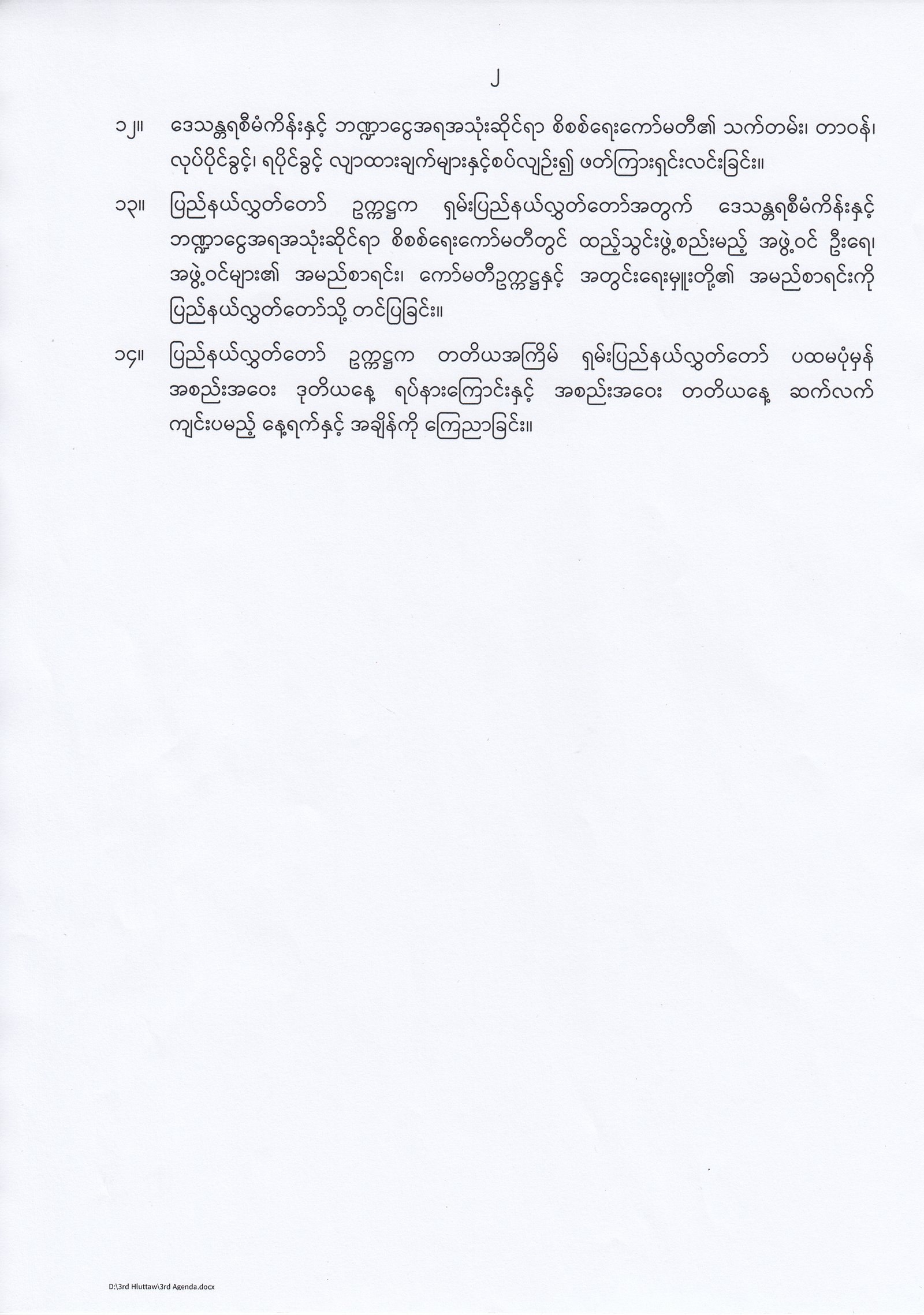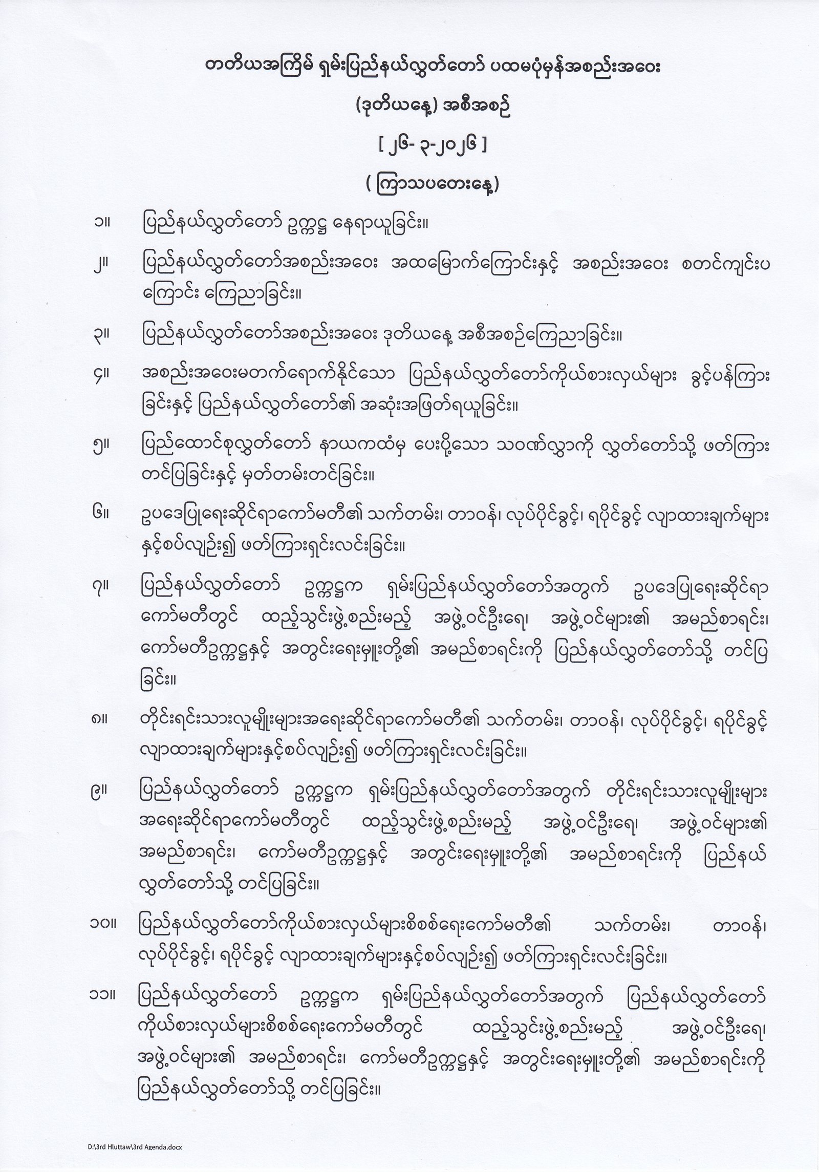 တတိယအကြိမ် ရှမ်းပြည်နယ်လွှတ်တော် ပထမပုံမှန်အစည်းအဝေး (ဒုတိယနေ့) အစီအစဉ်