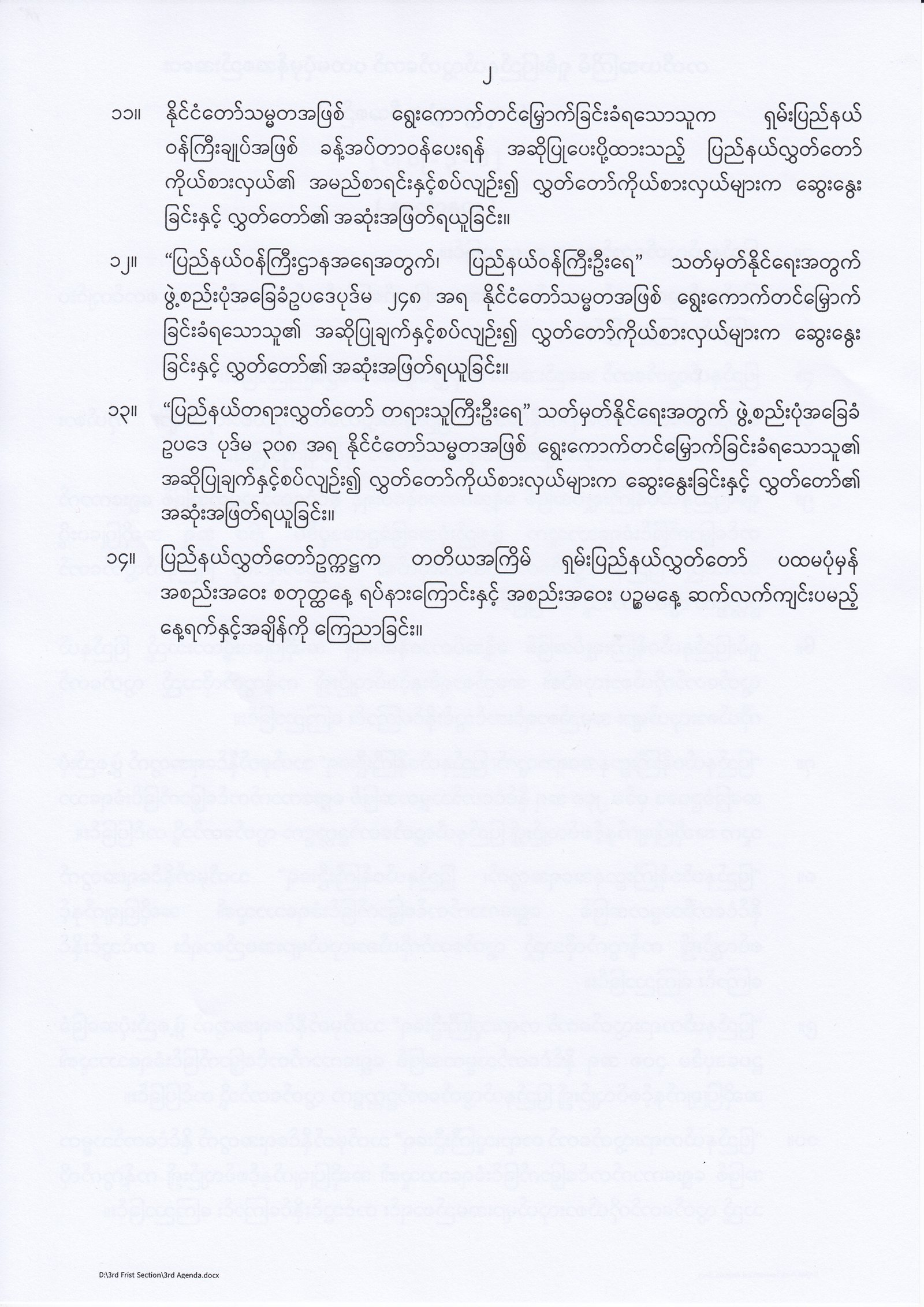 တတိယအကြိမ် ရှမ်းပြည်နယ်လွှတ်တော်ပထမပုံမှန်အစည်းးအဝေး(စတုတ္ထနေ့)အစီအစဉ်