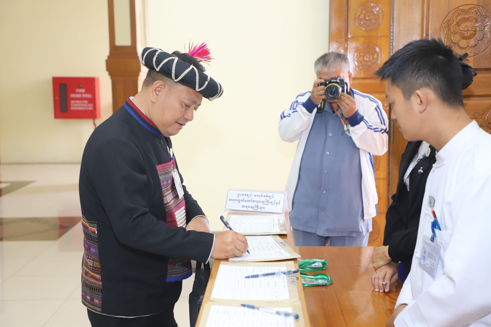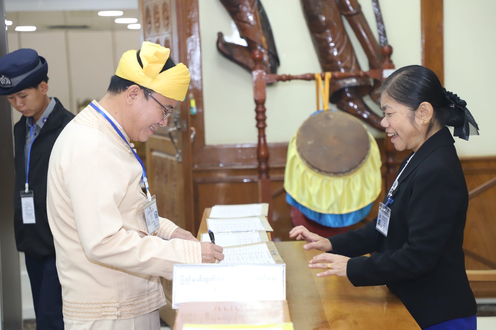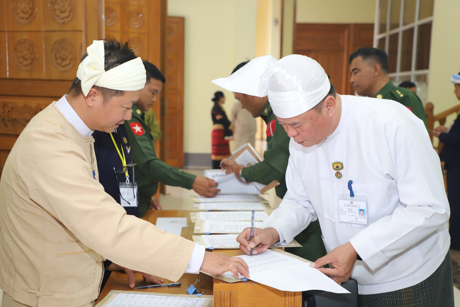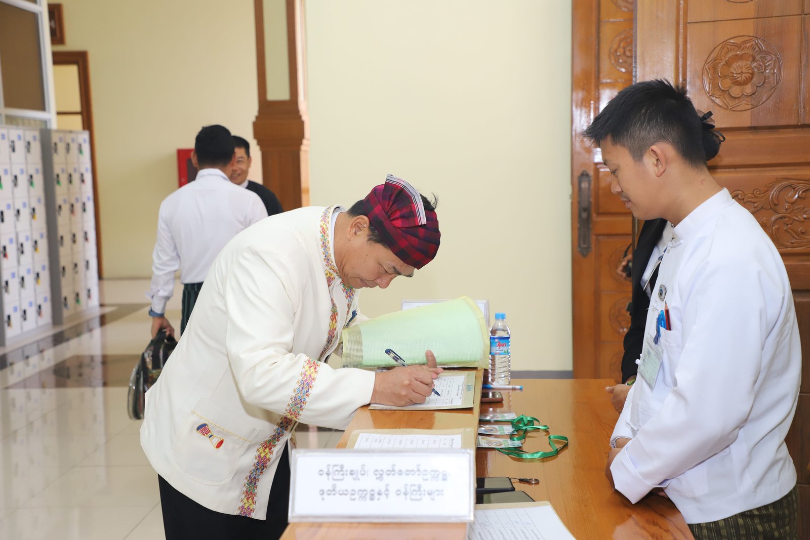 ၎င်းနောက် ပြည်နယ်ဥပဒေချုပ်အဖြစ် ခန့်အပ်တာဝန်ပေးအပ်ပြီးဖြစ်သော ဦးစိုင်းကျော်ဇံက ပြည်နယ်လွှတ်တော်ဥက္ကဋ္ဌ ရှေ့မှောက်၌ ကတိသစ္စာပြုခဲ့ပြီး ကတိသစ္စာပြုလွှာပေါ်တွင် လက်မှတ်ရေးထိုးခဲ့ပြီးနောက် ပြည်နယ်စာရင်းစစ်ချုပ်အဖြစ် ခန့်အပ်တာဝန်ပေးအပ်ပြီးဖြစ်သော ဒေါ်ခင်ထွေးရီက ပြည်နယ်လွှတ်တော်ဥက္ကဋ္ဌ ရှေ့မှောက်၌ ကတိသစ္စာပြုခဲ့ပြီး ကတိသစ္စာပြုလွှာပေါ်တွင် လက်မှတ်ရေးထိုး ခဲ့သည်။