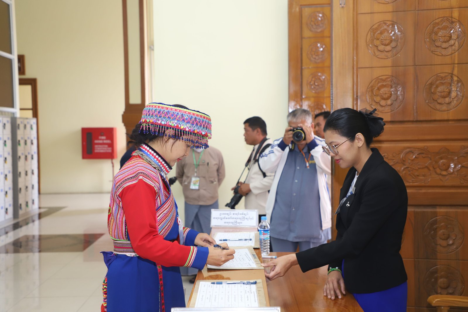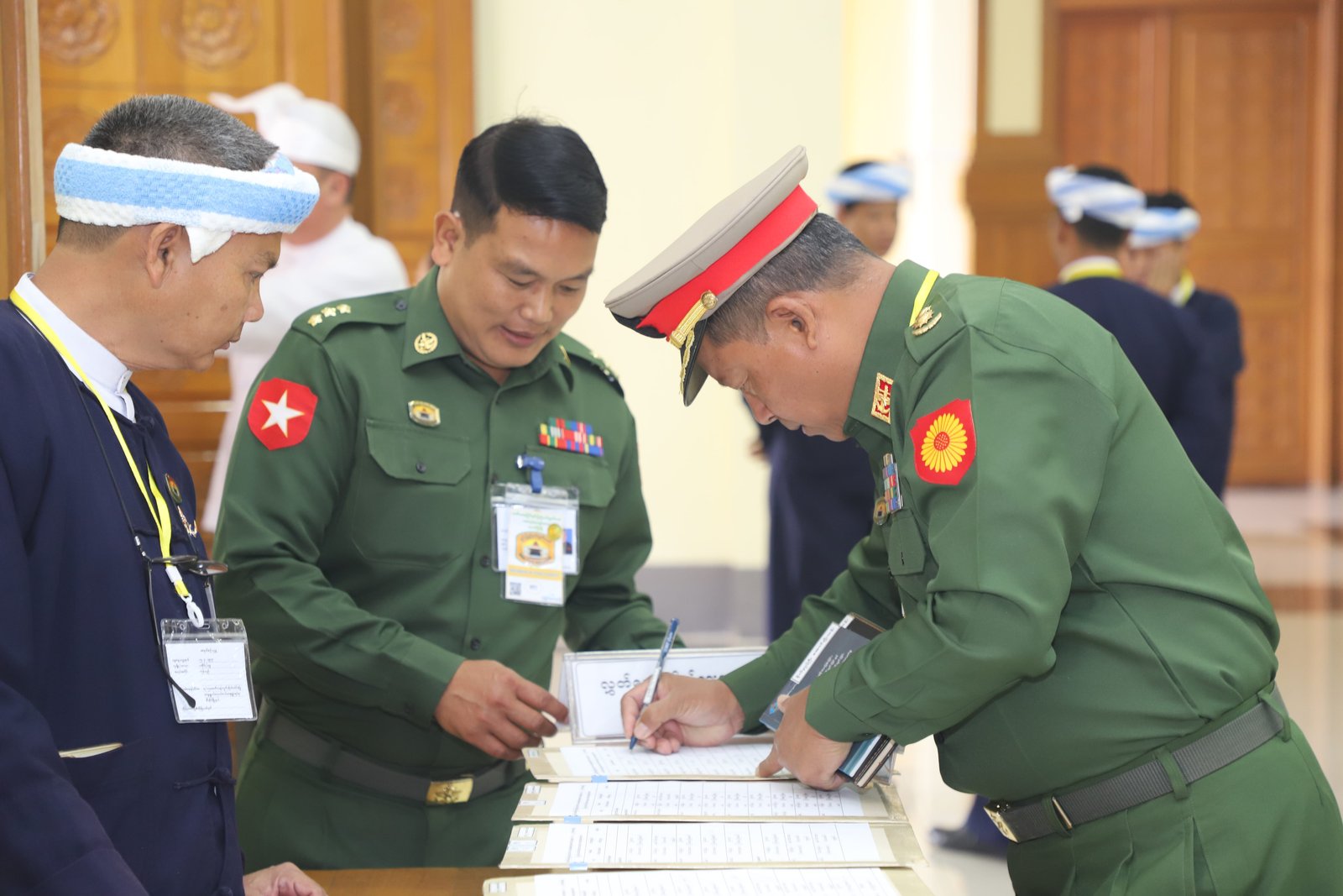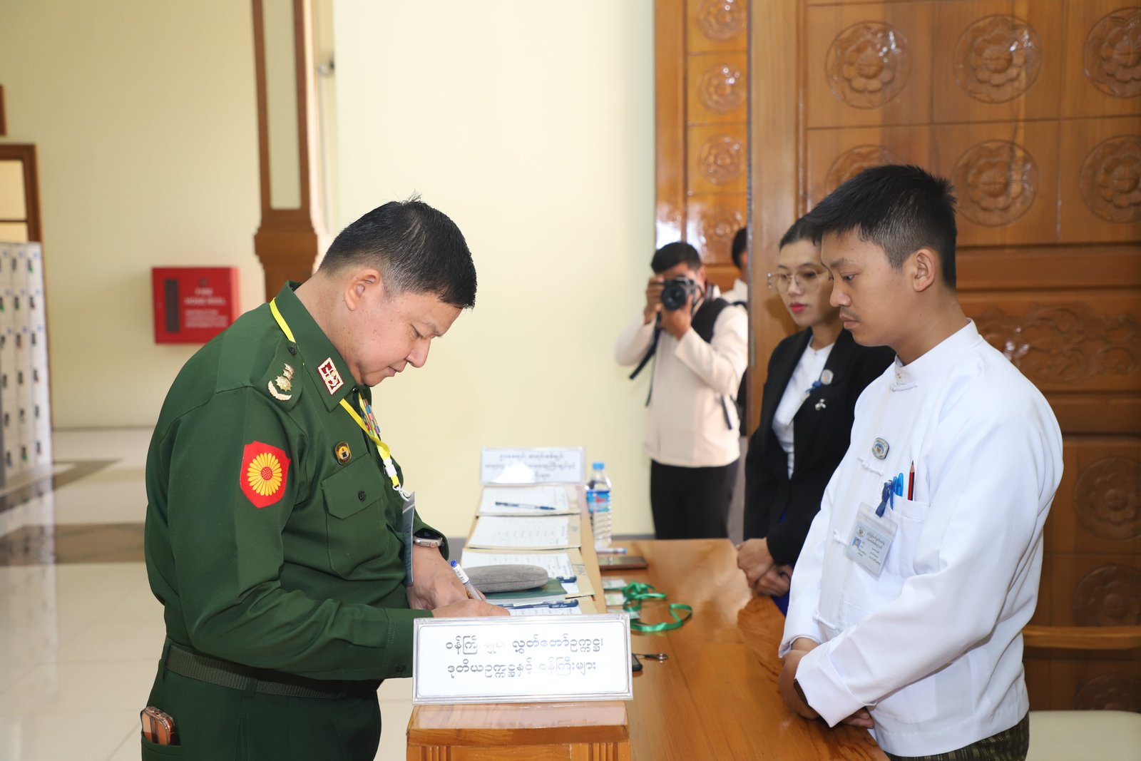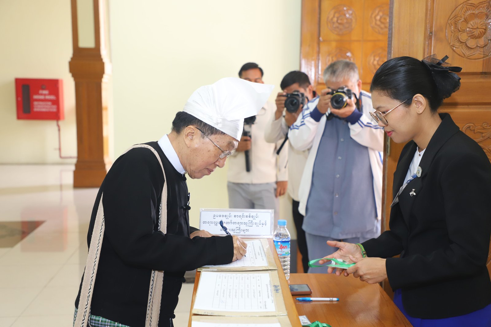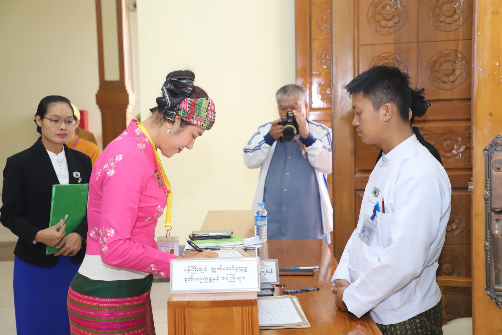 ၎င်းနောက် ပြည်နယ်ဥပဒေချုပ်အဖြစ် ခန့်အပ်တာဝန်ပေးအပ်ပြီးဖြစ်သော ဦးစိုင်းကျော်ဇံက ပြည်နယ်လွှတ်တော်ဥက္ကဋ္ဌ ရှေ့မှောက်၌ ကတိသစ္စာပြုခဲ့ပြီး ကတိသစ္စာပြုလွှာပေါ်တွင် လက်မှတ်ရေးထိုးခဲ့ပြီးနောက် ပြည်နယ်စာရင်းစစ်ချုပ်အဖြစ် ခန့်အပ်တာဝန်ပေးအပ်ပြီးဖြစ်သော ဒေါ်ခင်ထွေးရီက ပြည်နယ်လွှတ်တော်ဥက္ကဋ္ဌ ရှေ့မှောက်၌ ကတိသစ္စာပြုခဲ့ပြီး ကတိသစ္စာပြုလွှာပေါ်တွင် လက်မှတ်ရေးထိုး ခဲ့သည်။