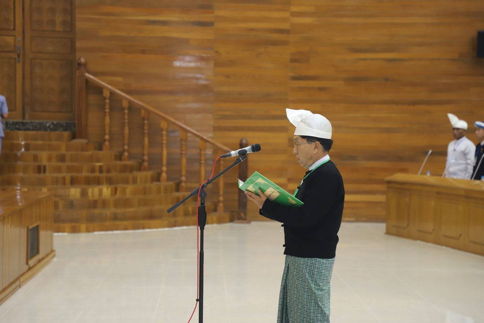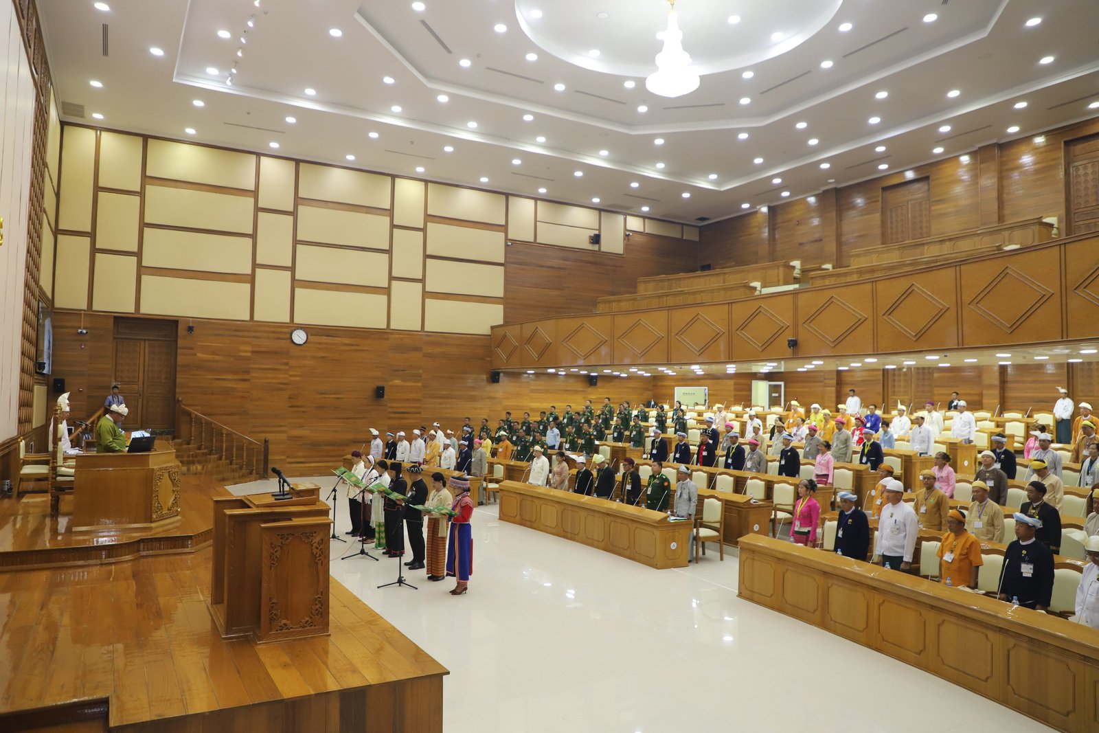 ဆက်လက်ပြီး ပြည်နယ်တရားလွှတ်တော်တရားသူကြီးချုပ် ဦးသန်းဦးလွင်နှင့် ပြည်နယ်တရား လွှတ်တော်တရားသူကြီးများအဖြစ် ခန့်အပ်တာဝန်ပေးအပ်ပြီးဖြစ်သောပုဂ္ဂိုလ်များ၊ ရှမ်းပြည်နယ်အစိုးရ အဖွဲ့ ပြည်နယ်ဝန်ကြီးများနှင့် ကိုယ်ပိုင်အုပ်ချုပ်ခွင့်ရဒေသဦးစီးအဖွဲ့ဥက္ကဋ္ဌများအဖြစ် ခန့်အပ်တာဝန် ပေးအပ်ပြီးဖြစ်သော ပုဂ္ဂိုလ်များ၊ ပြည်နယ်တိုင်းရင်းသားလူမျိုးရေးရာဝန်ကြီးများအဖြစ် ခန့်အပ်တာဝန်ပေးအပ်ပြီးဖြစ်သော ပုဂ္ဂိုလ်များက ပြည်နယ်လွှတ်တော်ဥက္ကဋ္ဌ ရှေ့မှောက်၌ ကတိသစ္စာပြုခဲ့ပြီး ကတိသစ္စာပြုလွှာပေါ်တွင် လက်မှတ်ရေးထိုးခဲ့ကြသည်။