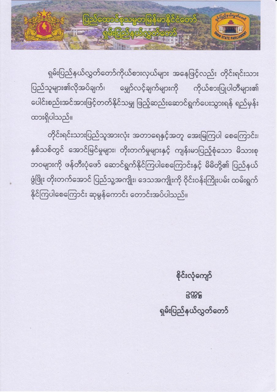 ရှမ်းပြည်နယ်လွှတ်တော် Website အား စမ်းသပ်ထုတ်လွှင့်နေခြင်းဖြစ်ပါသည်